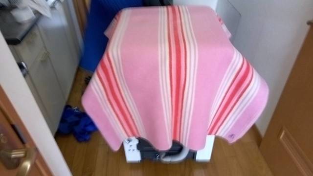 市内近距離の引越しです。2ドア小型冷凍庫を養生しています。輸送時に傷がいかないようにジャバラ(業界用語で青い色の資材のこと)を使って包んでいます。液晶テレビも毛布で梱包しています。 費用は税込み12000円頂きました。