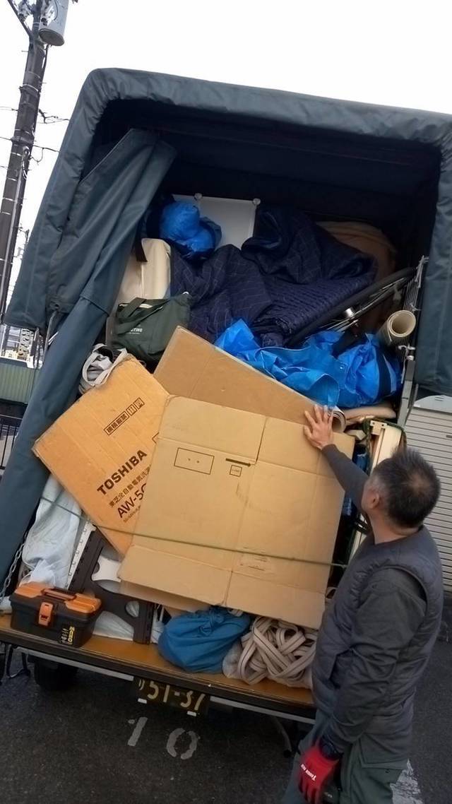 軽トラック1台にやっと積み切れました。洗濯機の設置等などで2名で2時間を少し超えましたが 引越し代金は12,000円(税込み)頂きました。