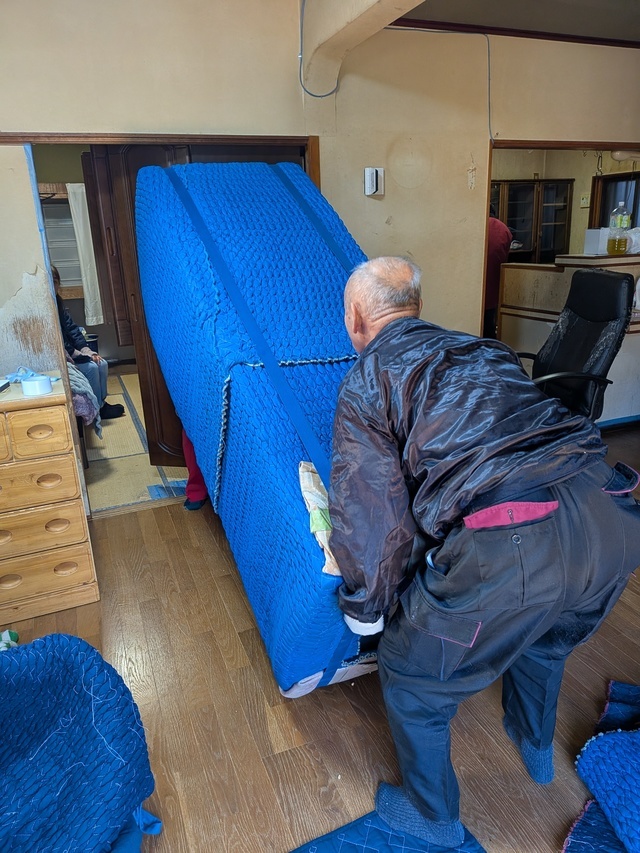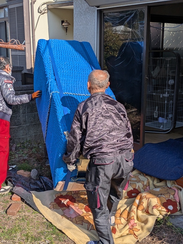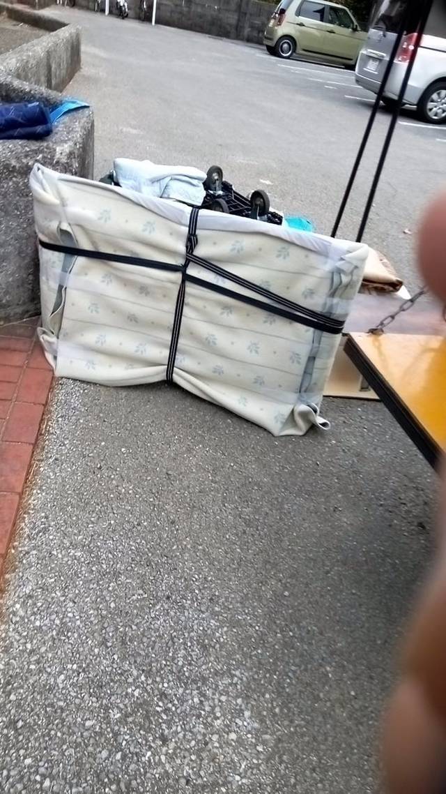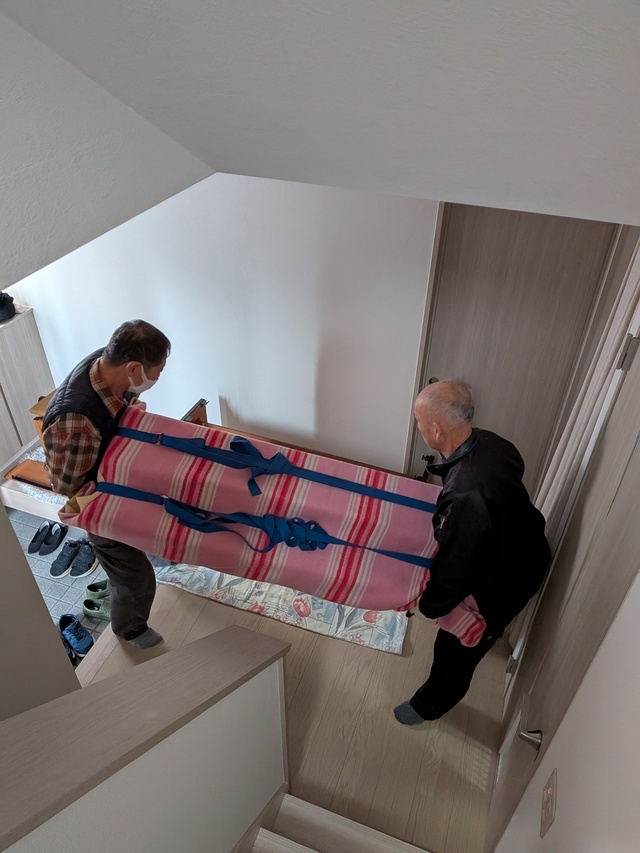 高知市内から南国市までの引越しです。 写真には撮っていませんが、搬出先ではフェンスを外して掃き出し窓から直接出して積み込みました。 ベットのマットレスの搬入作業を写しています。