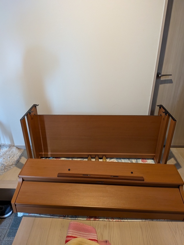 本体をキーボードと脚の部分に2分割して運んでいます。
