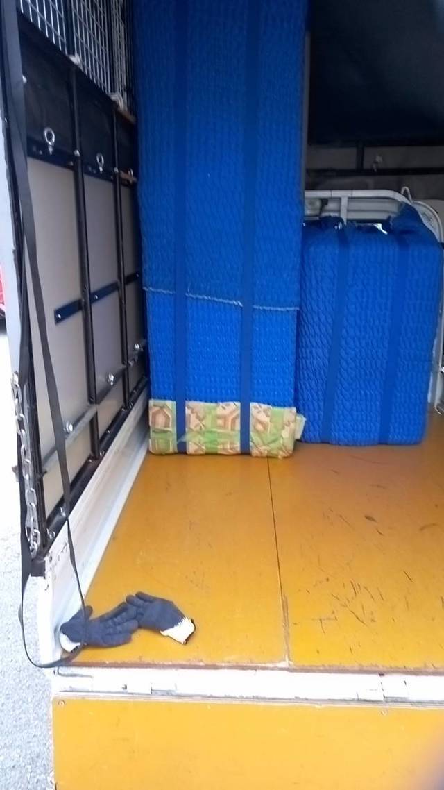 軽トラtック1台で十分に載りました。ソファーの足とサイドボードに保護材を貼らせていただきました。